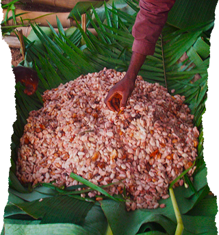 Cocoa harvests differ from year to year, and so we use our knowledge to create the best blends that will ensure the consistent quality and the utmost taste experience. Cocoa trees produce cocoa pods, each containing about 40 cocoa beans. The Cocoa beans are removed from the shells and left to ferment in heaps under banana leaves.