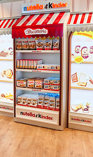 By taking a bold approach to the life cycle of the products, Ferrero Travel Market has cut the energy and materials used to make the gondolas. On top of that, the modular nature of the Sustainable Gondolas means that they can be adapted to many purposes, with changeable graphics and adjustable shelving. As a result, they can be deployed for different purposes in a variety of locations and displaying different products from Ferrero’s leading portfolio.