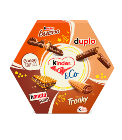 Introducing Kinder & Co 179g: the new travel-exclusive mix of iconic Kinder and Ferrero brands. This selection includes 2 Kinder Bueno, 2 Hanuta Minis, 2 Tronky and 2 Duplo. Discover this mix, ideal for sharing or enjoying on your own.